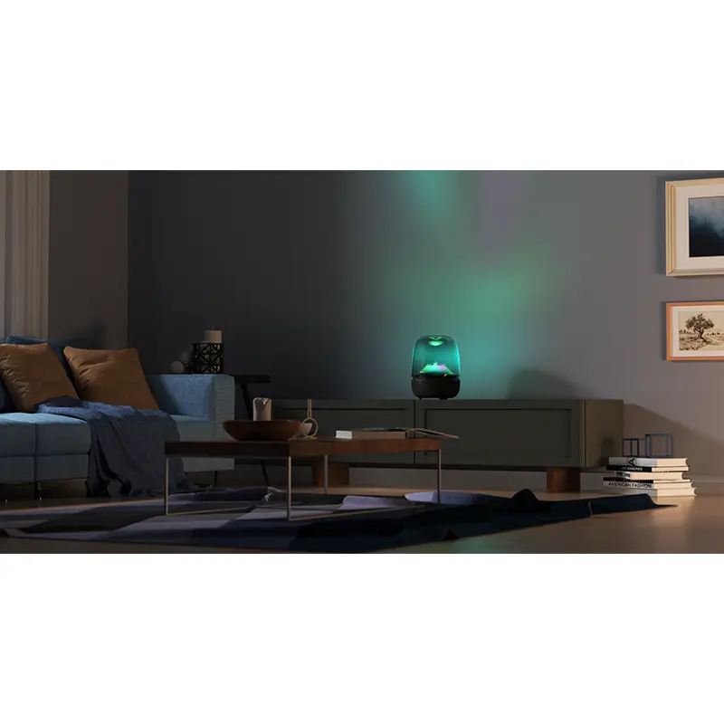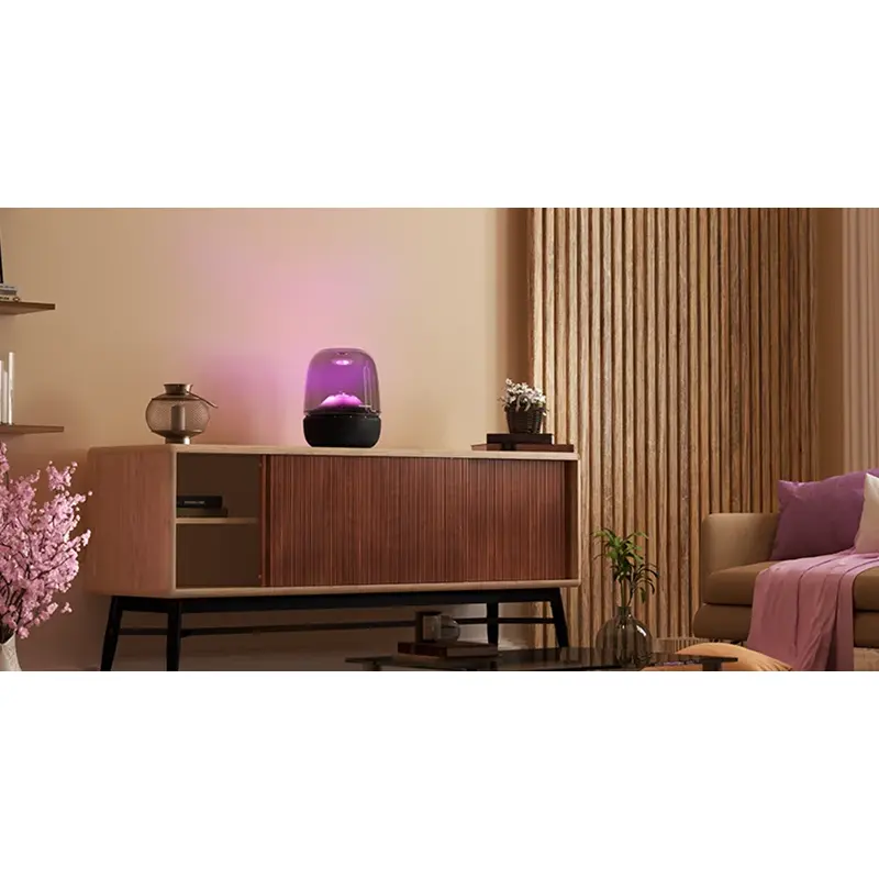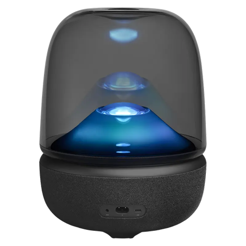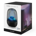 Harman Kardon Aura Studio 5 به سیستم صوتی 360 درجه واقعی مجهز است که صدا را بهصورت یکنواخت در تمام فضا پخش میکند. وجود سابووفر قدرتمند داخلی باعث تولید بیس عمیق، گرم و کنترلشده میشود، در حالی که درایورهای میانی و بالا شفافیت صدا را حتی در ولومهای بالا حفظ میکنند. اتصال بیسیم از طریق Bluetooth امکان پخش موسیقی با کیفیت بالا از موبایل، تبلت و لپتاپ را فراهم میکند. نورپردازی داخلی با طراحی گنبدی شکل، بهصورت هماهنگ با ریتم موسیقی تغییر میکند و حس حضور در یک فضای لوکس و آرامشبخش را ایجاد مینماید.