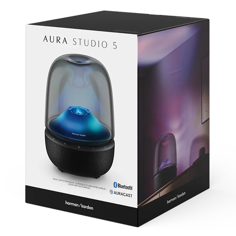اسپیکر Harman Kardon Aura Studio 5 یکی از خاصترین و لوکسترین اسپیکرهای بلوتوثی خانگی این برند آمریکایی است که با تمرکز بر کیفیت صدای 360 درجه و طراحی شفاف و نورپردازی محیطی تولید شده است. این مدل ادامهدهنده مسیر موفق سری Aura Studio بوده و با بهبود در وضوح صدا، بیس عمیقتر و جلوههای نوری هماهنگ با موسیقی، تجربهای فراتر از یک اسپیکر معمولی ارائه میدهد. Aura Studio 5 علاوه بر پخش موسیقی، بهعنوان یک المان دکوراتیو مدرن نیز در فضای داخلی کاملاً خودنمایی میکند.